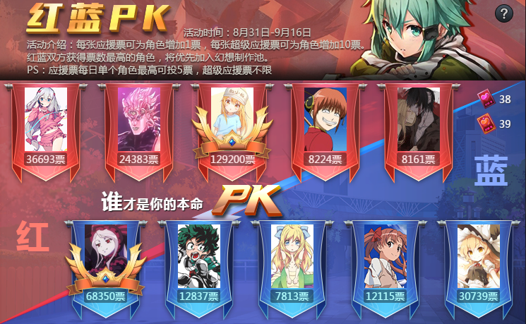 本轮应援投票圆满结束,红蓝PK第四期提名开始啦,小伙伴们踊跃参与呀,你的本命英雄就在下期啦,敬请期待下期红蓝PK!