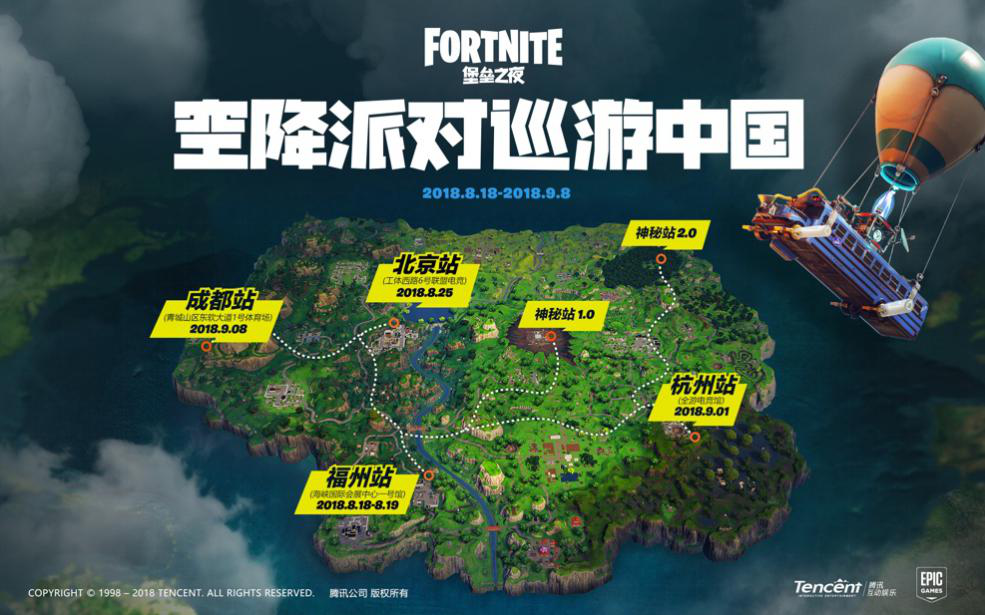 全球超人气竞技网游《堡垒之夜》品牌活动——空降派对,点燃了堡垒玩家2018年的夏天。从“榕城”福州,“帝都”北京,到“人间天堂”杭州,再到“天府之国”成都,“空中巴士”已经走过了四座城市。