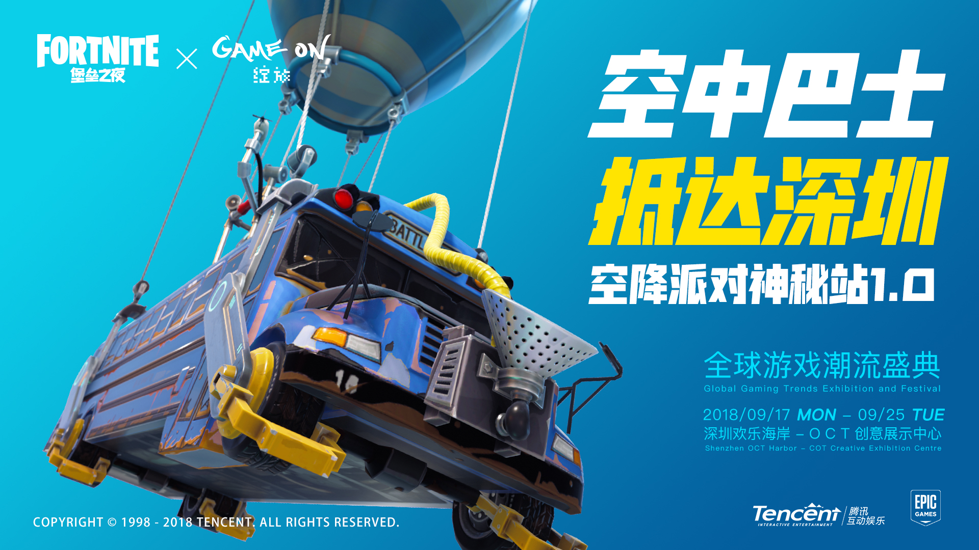 每场比赛开始前都会鸣笛前行的“空中巴士”,如今已经成为《堡垒之夜》游戏内的经典符号,见证了无数空降勇士从这里纵身跃下加入战斗。因此,《堡垒之夜》会将一辆精心打造的“空中巴士”带到本次Game On绽放展会现场!