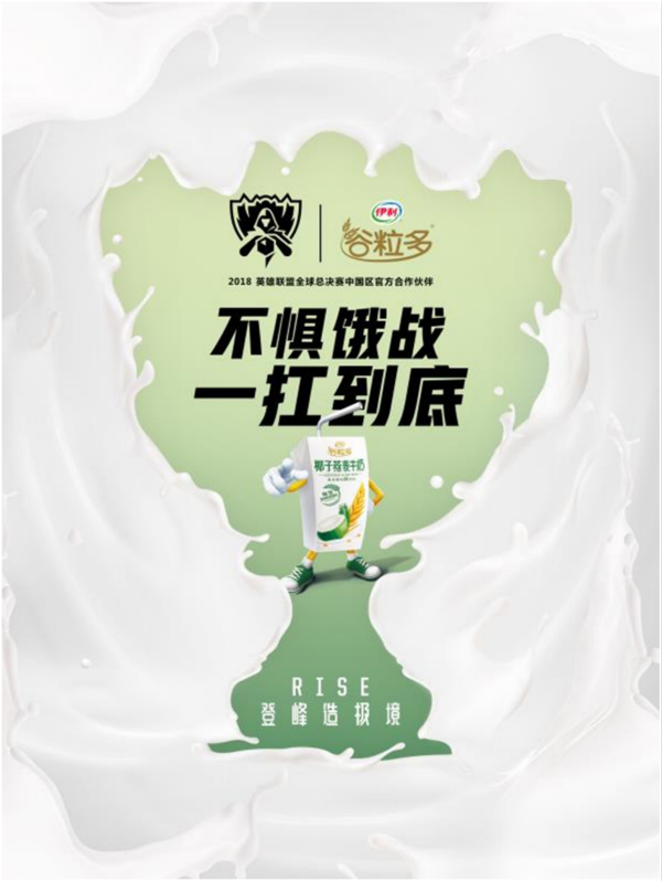 “扛饿大品牌”谷粒多是伊利集团旗下谷物牛奶品牌,产品精选天然谷物颗粒和优质醇正牛奶,以“营养+扛饿”的概念,满足年轻消费者健康和便捷的需求,让他们能时时刻刻保持最好的状态,尽享阳光正能量的生活。2017年,谷粒多以中国区官方合作伙伴的身份陪伴2017全球总决赛一路前行,被冠以“护国神奶”的称号,也因此成为赛事受众眼中的“电竞同路人”。