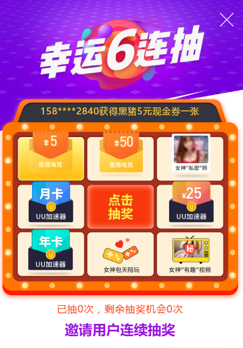 所有在 9月14日23:59前,在《黑猪电竞PC版》下过单的老用户,成功预约,还可抽取进阶奖励:2笔订单随机免单(仅限上线当天)。9月25日14~17点,每小时抽取2位已预约用户,获得绝杀奖励:女神包天免费陪玩服务,并体验“30分钟快速撩动你”服务,你敢挑战黑猪女神的诱惑吗?