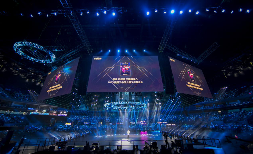 9月16日,在英雄联盟7周年庆典的最后一天,拳头游戏大中华区及东南亚地区负责人叶强生站在舞台上,心情有些激动:“在7月份的时候我们上架了一款“暗星 科加斯”的皮肤,在今天,我想在这里分享给大家一个消息,这款皮肤以及相关道具限时售卖的收入,将百分之百捐献给中国儿童少年基金会,来帮助更多的儿童。”