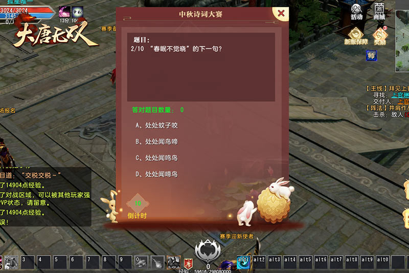 诗词大会与赏月花灯同样也是中秋月圆夜不可或缺的欢乐趣事,9月20日10时开始,中秋诗词大会就将在洛阳与长安中正式拉开帷幕。玩家们将体验一回莘莘学子赴京赶考的风韵雅事,面对考官所设下的各种千奇百怪考题,秀出不逊于战力武略的文韬水平,过关斩将一骑绝尘摘下花灯和心愿签奖品。