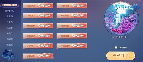 开放新服:浮生若梦、拨云见日、龙景茶、春和景明、触景生情、龙章凤姿、高山景行、景星凤凰、人间境、浮生若梦Ⅱ、龙景茶Ⅱ