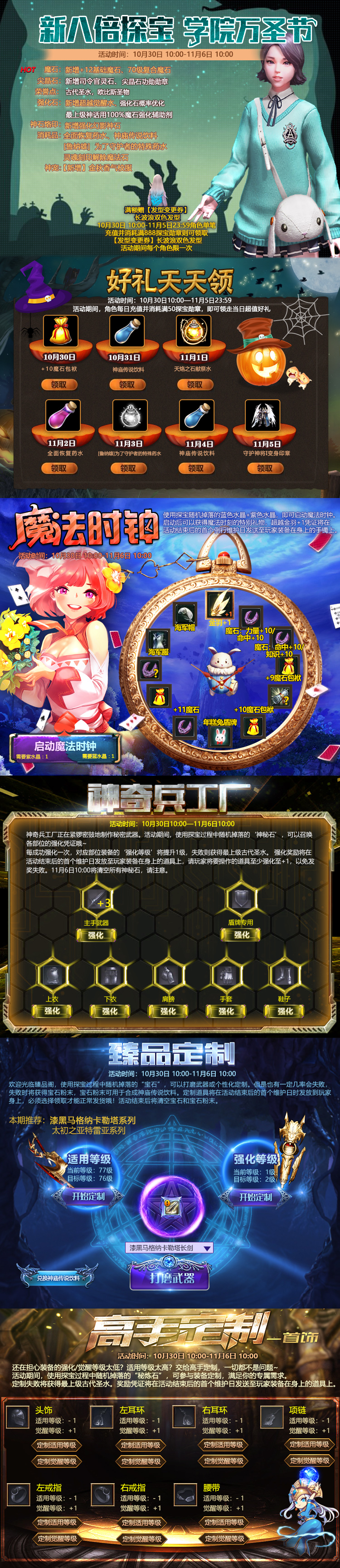 《永恒之塔》学院万圣节来袭,活动期间充值并消耗满888探宝勋章则可领取【发型变更券】长波浪双色发型,活动期间每个角色限一次。