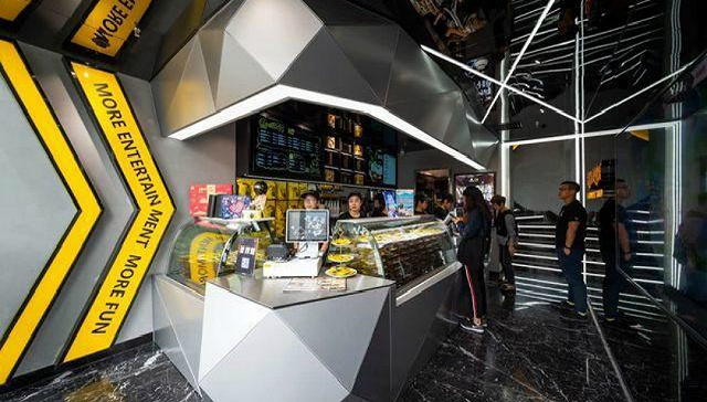 这家电竞主题店的设计延用了周黑鸭黄色和褐色的主题色,同时还增加了更多金属材质、几何图形及镜面效果,希望以此营造出时尚感和黑科技的氛围。
