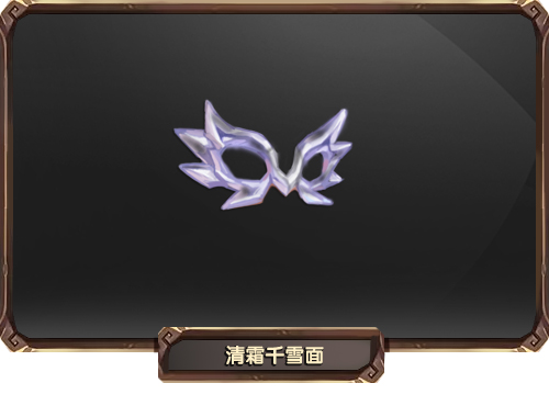 还有通用面具:清霜千雪面!漫天清霜化霰晶,骇浪卷起千堆雪,流光溢彩,英气不凡!