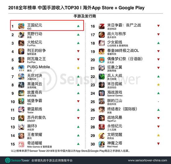 IGG的《王国纪元》夺得2018年海外收入No.1