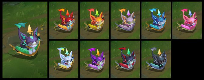 以下包含了男枪、悠米、卡特琳娜、杰斯四位英雄的“战斗学院炫彩”系列,Yummi除原皮肤之外,更是有多达九款炫彩可选。
