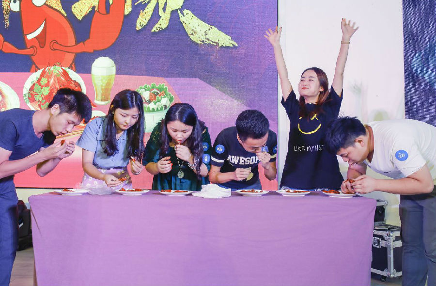 谁说女子不如男,吃虾争霸赛,小姐姐一骑绝尘