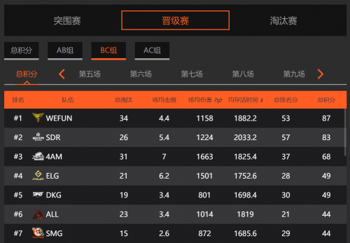而WF战队则是在BC组的赛事里面脱颖而出,在第一小局的比赛里面,WF战队无伤吃鸡。不过在吃鸡之后,还是有不少战队并不看好WF战队。因为WF刚枪不多,侧重点是策略和安排。在第一局里面占据地理优势化身炮塔点杀4AM,之后直接包围SDR,成功取得了胜利。而第二局里面10支战队进入最后阶段厮杀,WF远交近攻,联合WE清扫其他战队。之后成功击败盟友,清扫独狼后吃鸡成功。