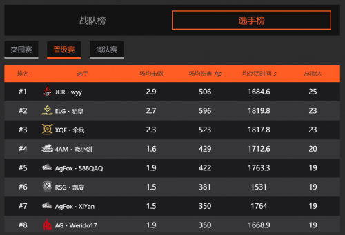 虽然Agfox在大家看来是有点莽夫,但是他们的战绩却直追公认最强的几支战队。虽然在整体实力上Agfox还不能够和XQF战队相提并论,但是他们也打出了他们的特点和优势,在选手榜里面两位选手进入到了前十。