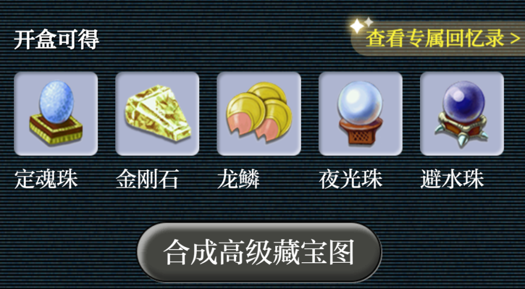 【避水珠、夜光珠、金刚石、定魂珠、龙鳞】