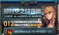 DNF国服特色副本超时空之战即将装载,会不会是一个比卢克更强力的副本呢,玩家拭目以待吧,新副本上线的同时带来全新超时空之战序幕活动,参加活动可以获得各种道具奖励,一起来看看吧。 超时空之战序章 活动时间:6月19日-7月5日 活动地址:敬请期待 活动玩法: 1