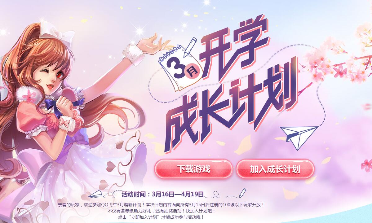 《QQ飞车》开学成长计划现已开启,本次计划内容将面向所有3月15日后注册的100级以下玩家开放!加入3月萌新计划,不仅有各等级助力好礼,还有抽奖活动。海量点劵、永久A车等豪礼你来拿! 开学成长计划 活动时间:3月16日-4月19日活动地址:点此进入 一、开学见