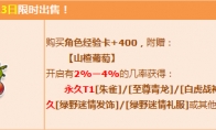 《QQ飞车》春日送豪礼 得朱雀等四大神兽,活动期间能够获得永久T1、永久套装,小伙伴是不是很心动呢,快来看看小编带来的QQ飞车4月活动吧。活动时间:4月11日-5月13日活动地址:点击进入 活动内容:活动期间,购【角色经验卡+400】,赠送【山楂葡萄】,有机会