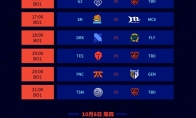 LOLS10小组赛赛程10月3日16点FLY战队迎战TES战队,17点TBD战队迎战DRX战队,18点RGE战队迎战TBD战队,19点DWG战队迎战JDG战队,20点GEN战队迎战TBD战队,21点TSM战队迎战FNC战队。