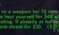 水晶瓶*1,绽亡花*2。使用:施加到目标武器上,让你的攻击和法术有一定几率使你恢复294点生命值,持续10分钟。如果你的生命值已满,则会获得可以吸收507点伤害的护盾,持续15秒。(5分钟冷却)。