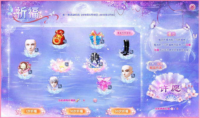 《炫舞时代》全新活动“祈福”将在五月版本更新后开启,小伙伴可通过购买买赠包获取祈福券,参与祈福将消耗祈福券,同时将获得花瓣,花瓣可到许愿树开启许愿。活动期间,参